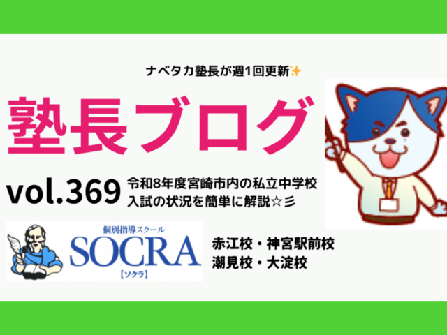 <塾長ブログvol.369>令和8年度宮崎市内の私立中学校入試の状況を簡単に解説☆彡